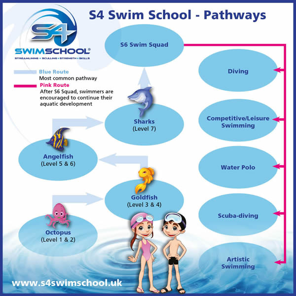 At S4 Swim School we promote continuous swimmer development and are keen to ensure there are clear effective progression/pathways for our swimmers. We can take children to a high level of swimming, specialising in advance technique and introductory coaching sessions. We believe that by instilling a basic competitive instinct this will help develop an individual for life whether they stay in the water or not!